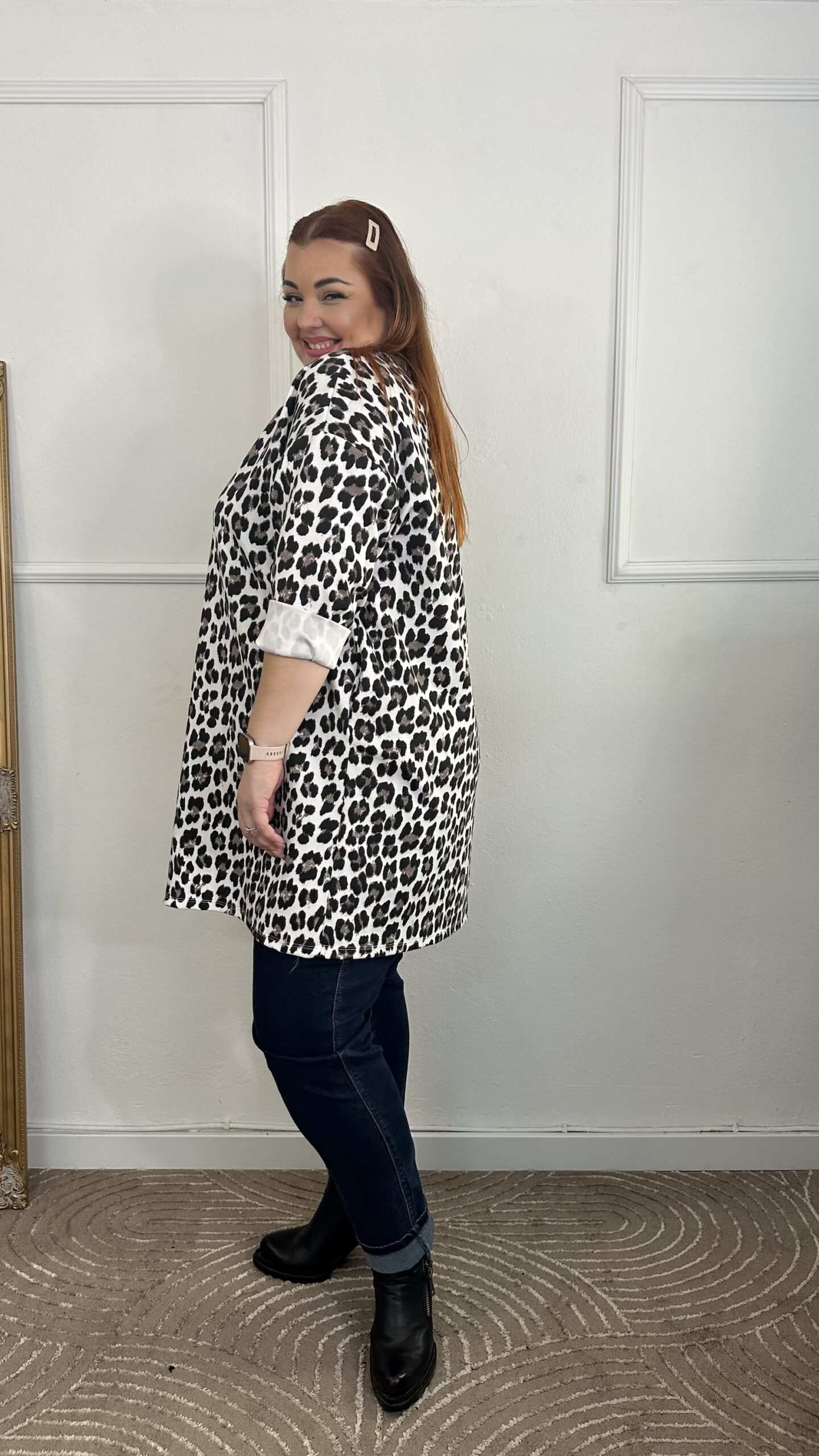 Άνετη και στιλάτη baby φούτερ μπλούζα, ιδανική για τις καθημερινές εμφανίσεις των μικρών μας φίλων. Κατασκευασμένη από απαλό και ζεστό φούτερ ύφασμα, προσφέρει άνεση και ελευθερία κινήσεων όλη την ημέρα. Διαθέτει πρακτικές τσέπες και μοντέρνο λεοπάρ ντεσέν που χαρίζει ξεχωριστό χαρακτήρα και παιχνιδιάρικο στυλ. Ιδανική επιλογή για βόλτες, σχολείο ή χαλαρές στιγμές στο σπίτι.