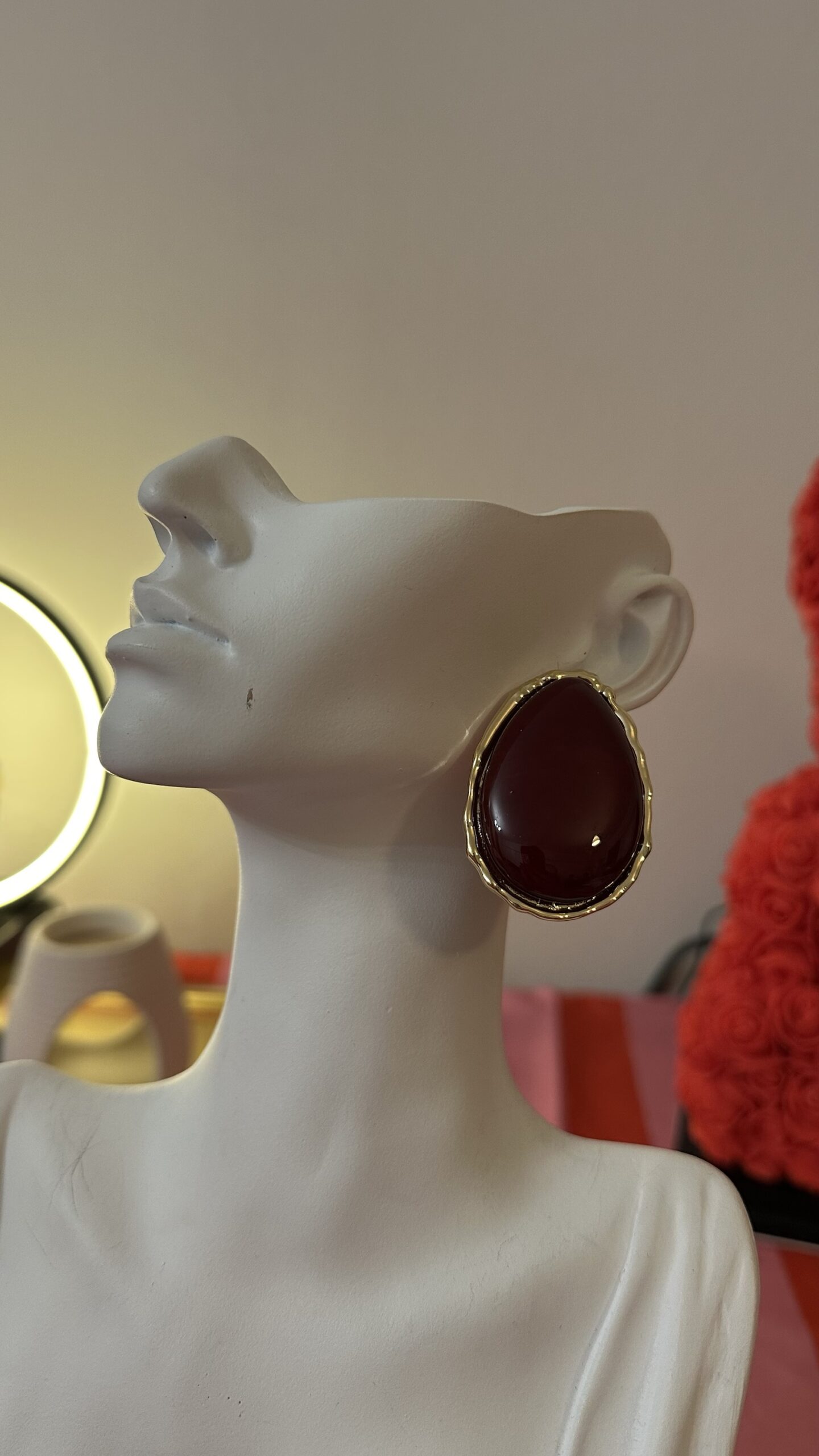 Εντυπωσιακό design με μεγάλη πέτρα σε βαθύ μπορντό χρώμα που προσθέτει κομψότητα και χαρακτήρα σε κάθε εμφάνιση. Κατασκευασμένα από ανοξείδωτο ατσάλι για ανθεκτικότητα και άνετη εφαρμογή. Ιδανικά για βραδινές αλλά και statement εμφανίσεις.