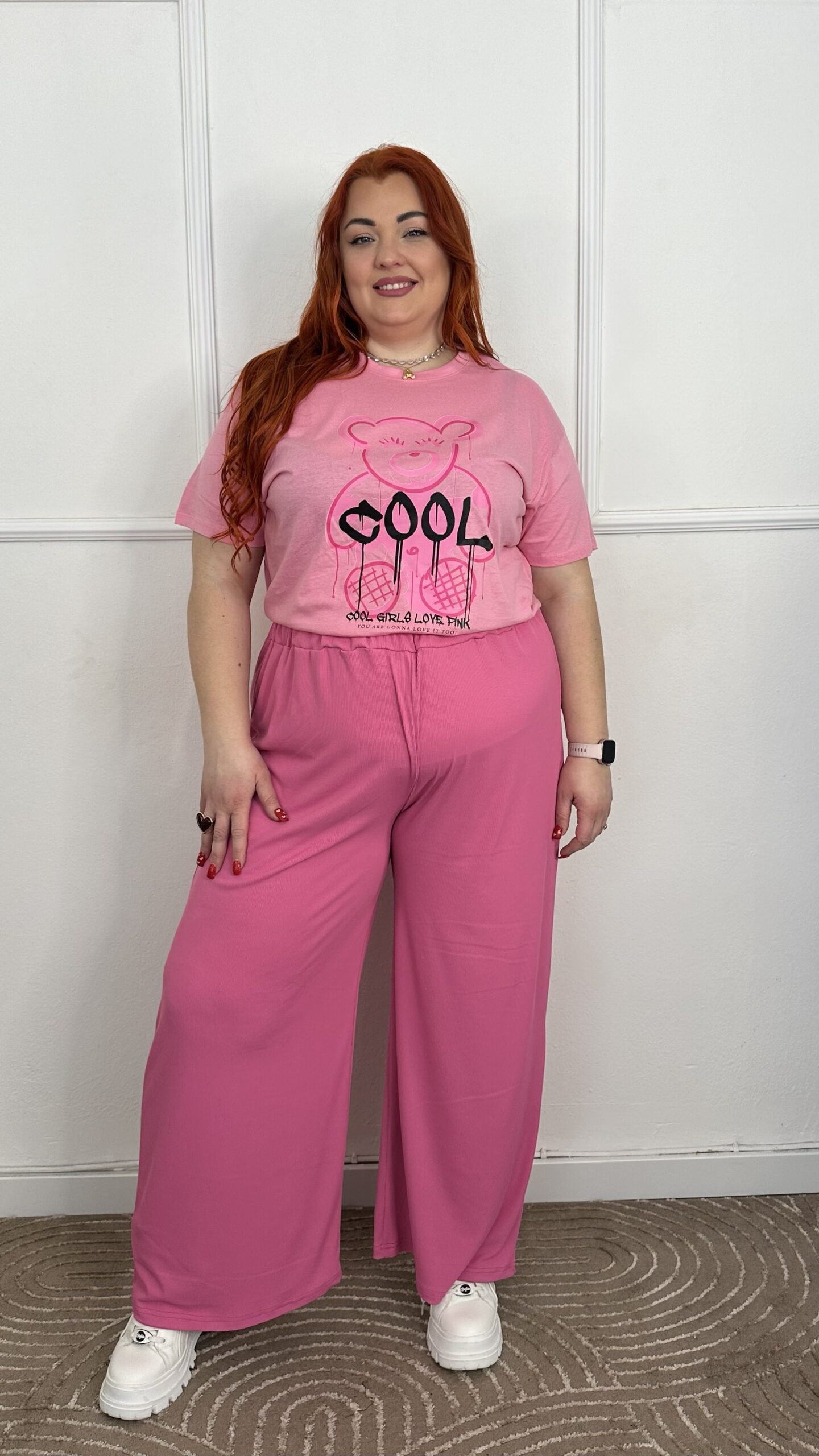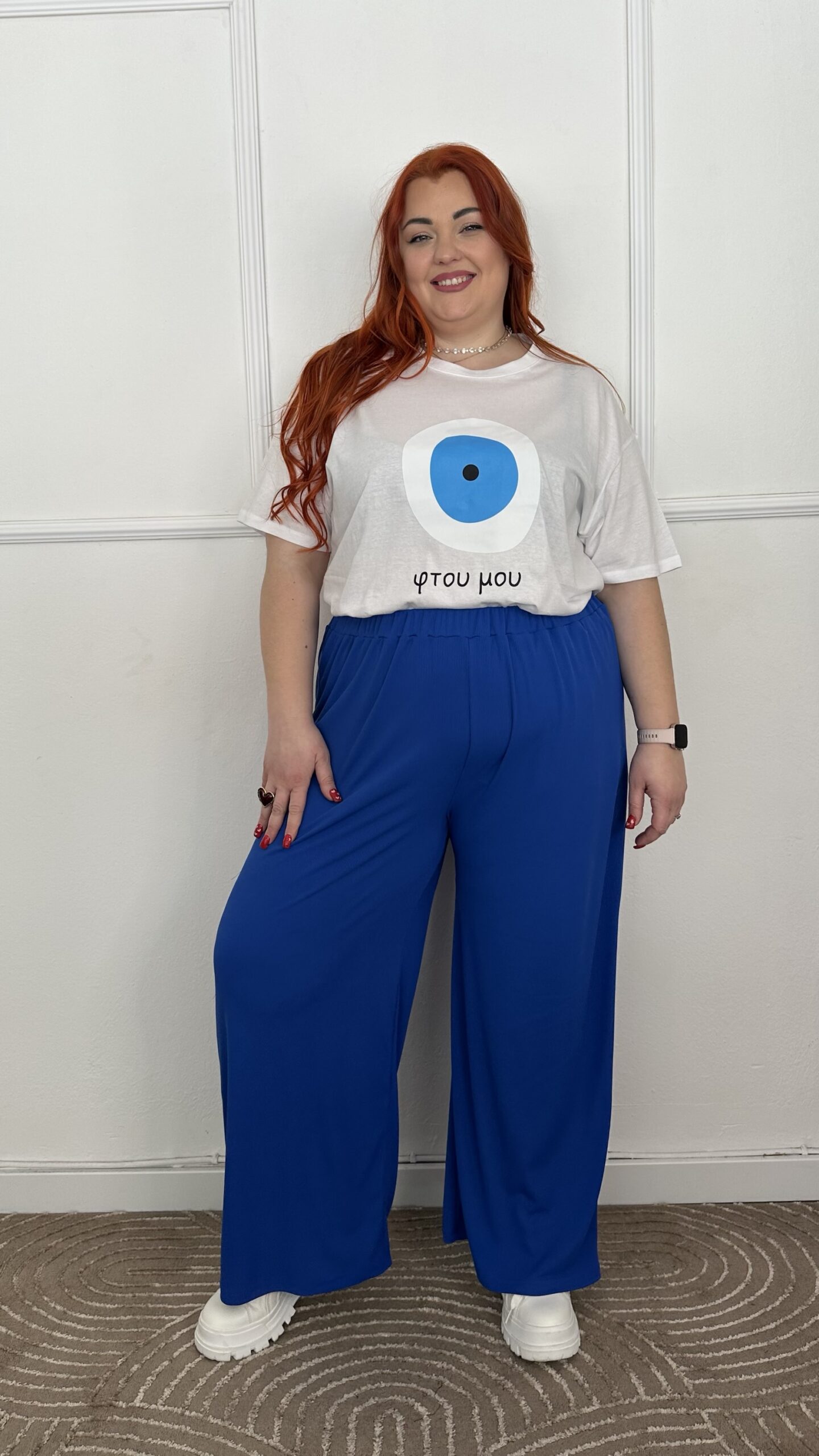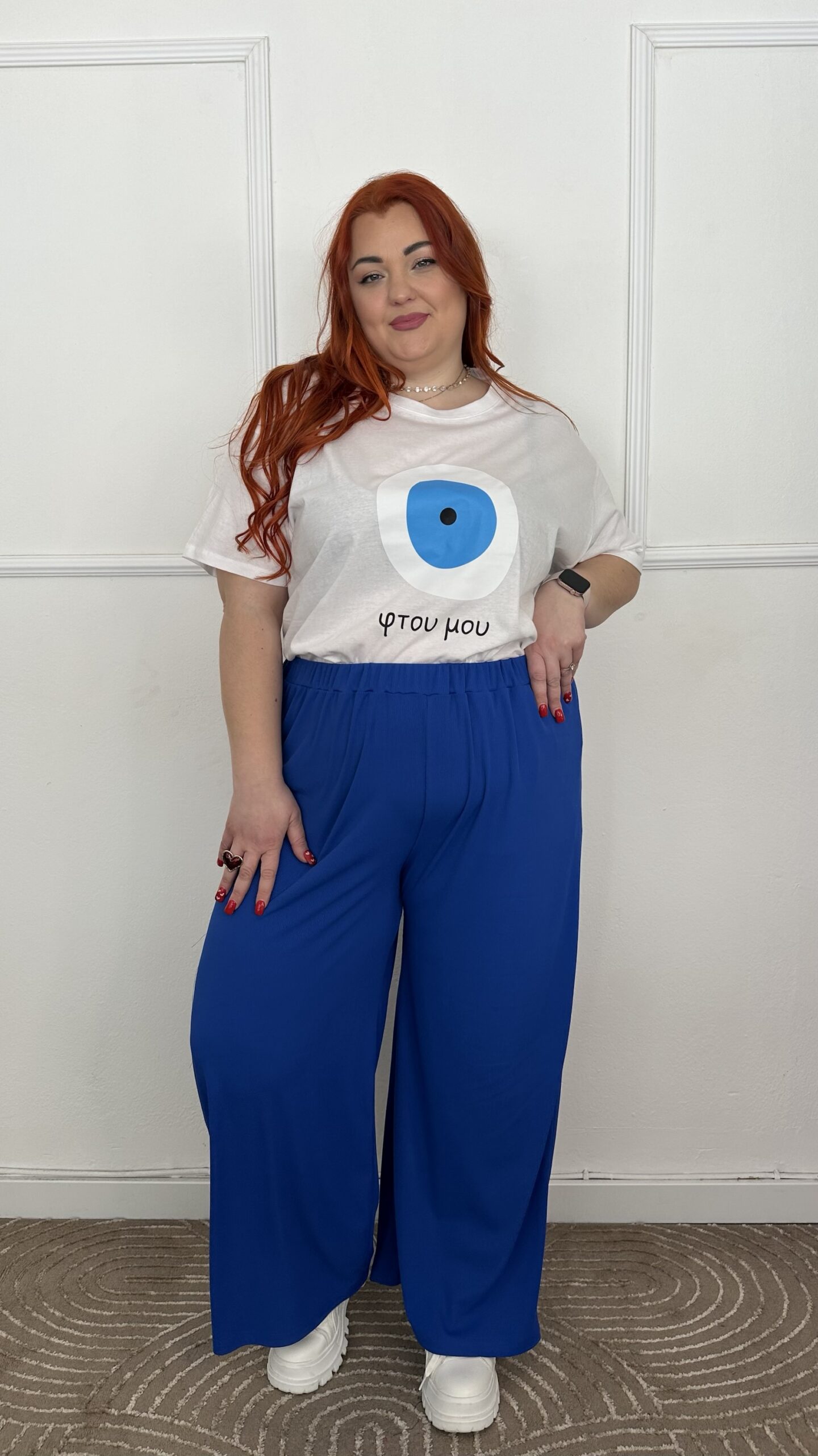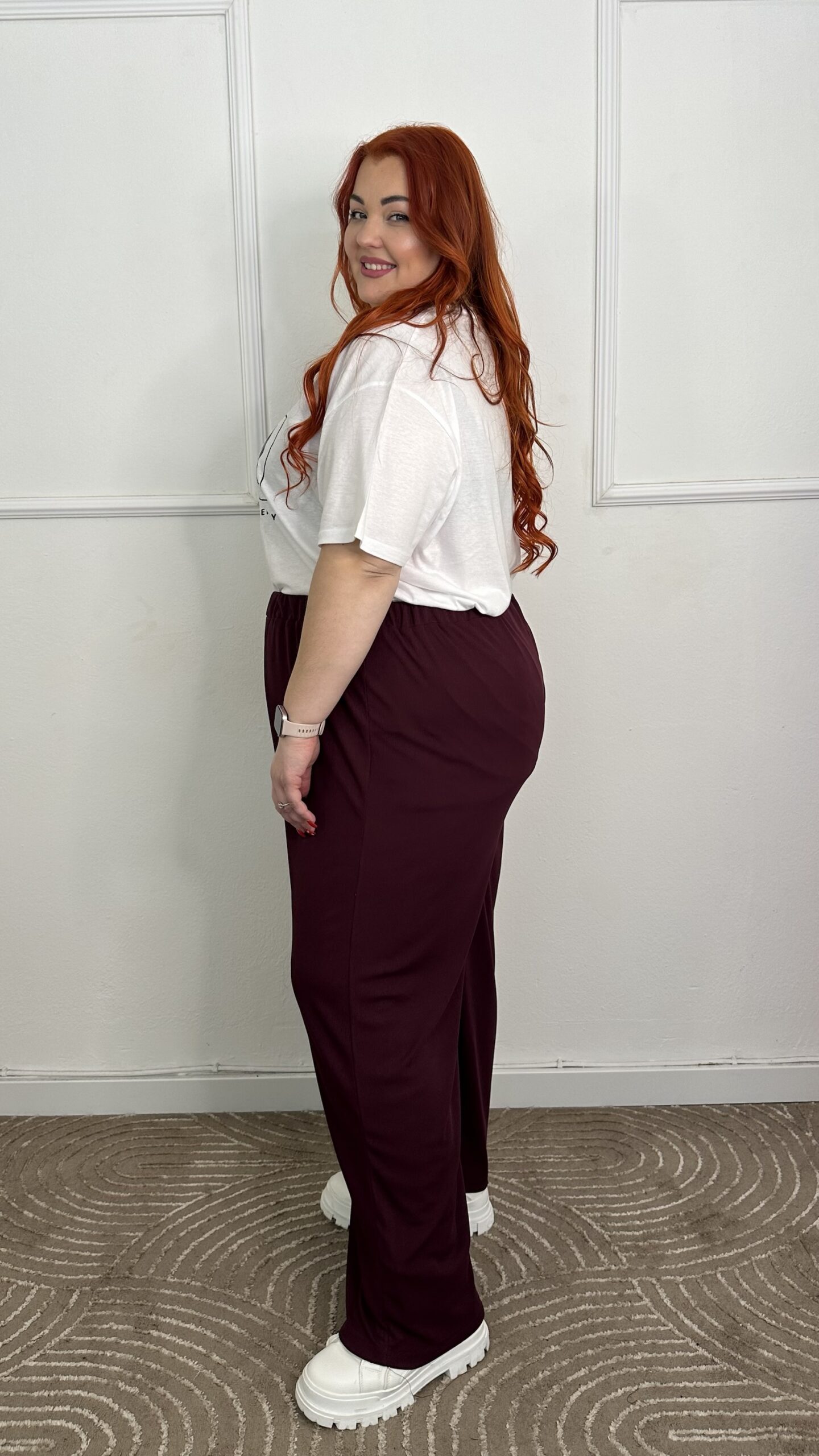 Παντελόνα από ελαστικό ριπ ύφασμα με άνετη, φαρδιά γραμμή. Διαθέτει ελαστική μέση για σταθερή και άνετη εφαρμογή και ψηλόμεση γραμμή που κολακεύει τη σιλουέτα. Το ύφασμα είναι απαλό, ευχάριστο στην αφή και δεν διαφανίζει.