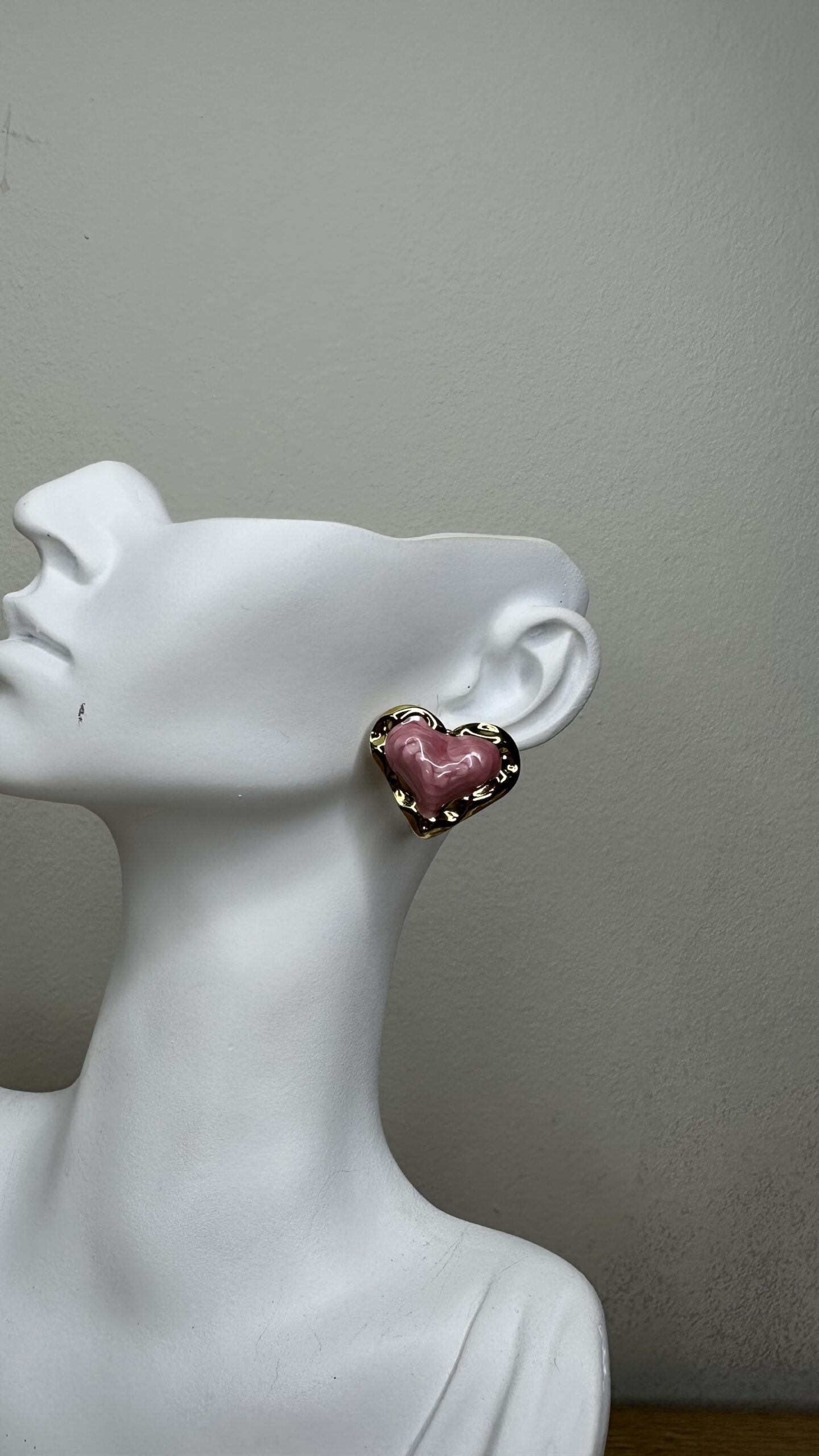 Σκουλαρίκια από ατσάλι με χρυσό και ροζ χρώμα (8105)